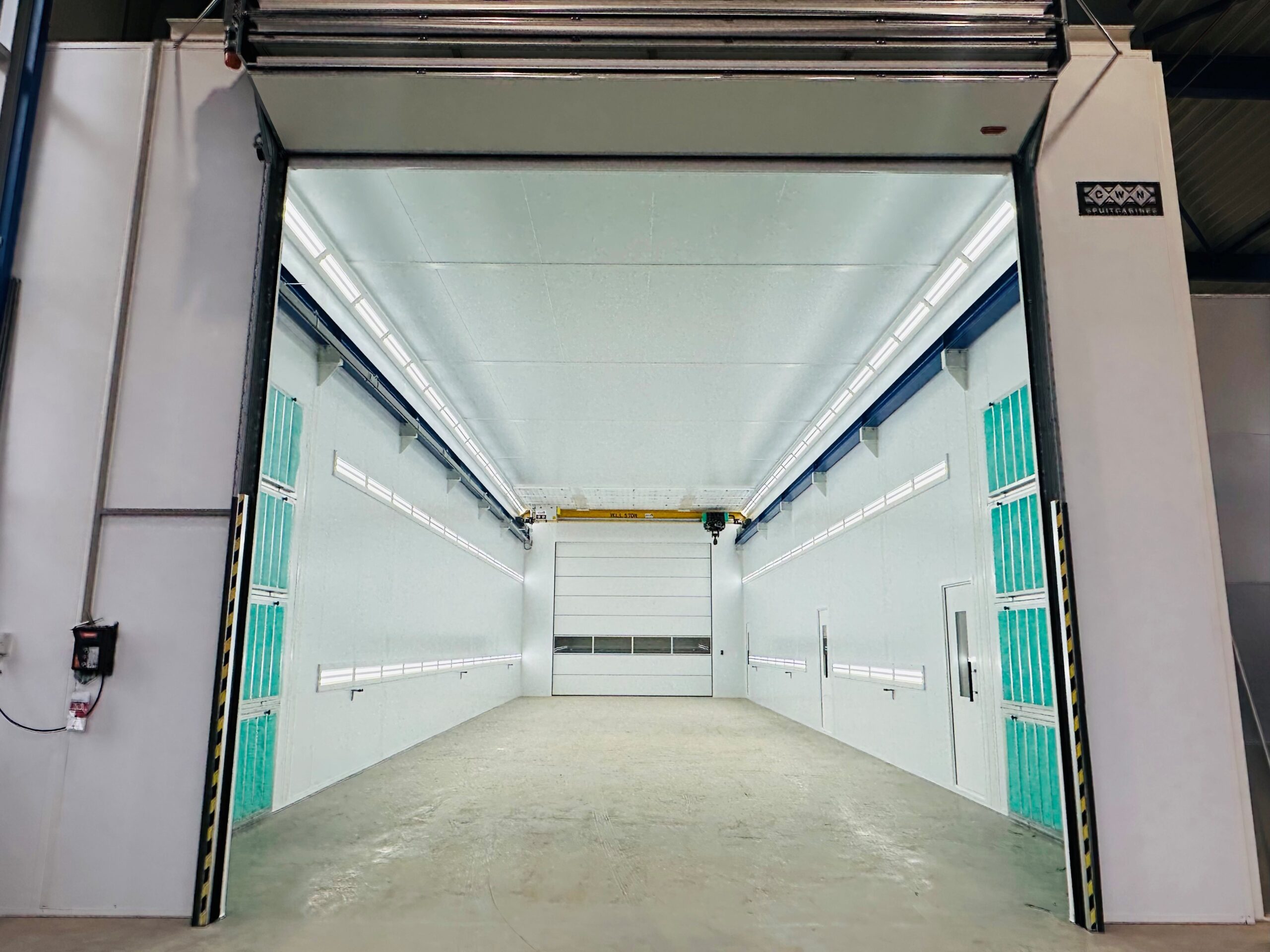 Diagonale spuitcabine 22 x 7 x 6 mtr + mengruimte